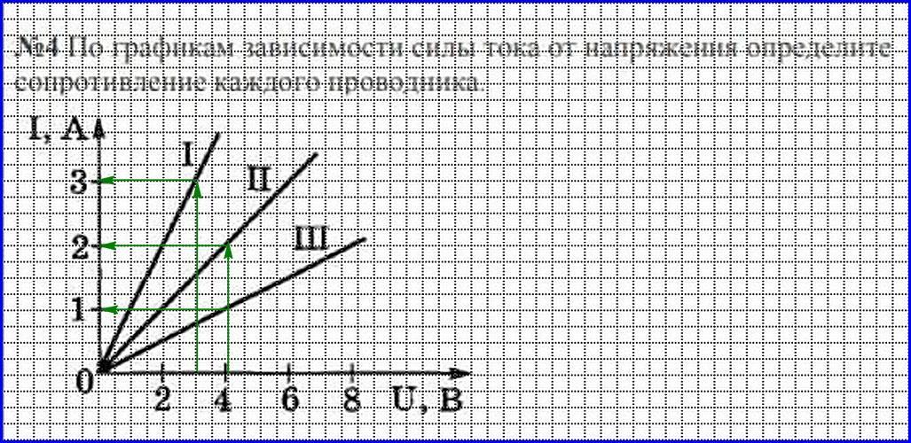 U=4 B; I=1 A => R=U/I=4/1=4 Ом.