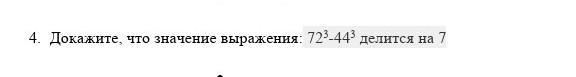72^3-44^3 = (72-44)(72^2×72•44+44^2) = 28(72^2×72•44+44^2) - делится на 7 т.к.: 28 делится на 7