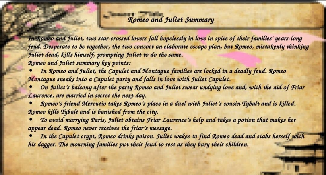 2. …6…. Juliet wakes up, sees Romeo dead and kills herself.