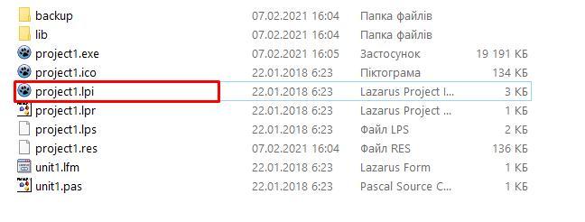Пояснення: спочатку потрібно видобути файли з архіву, а потім відкрити файл project1.lpi. (ФОТО 4)