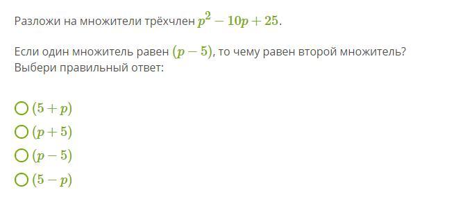 Если один множитель равен (p−5) , то чему равен второй множитель?