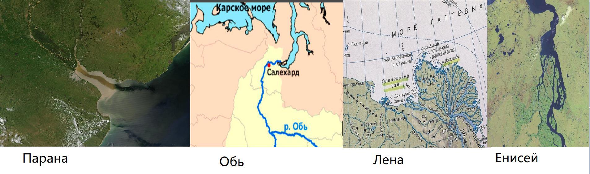 Устье большинства крупных рех разделяются на два вида:дельта-это когда основное русло устья разделяется на множество рукавов (протоков), оно имеет форму веера и эстуарий-это когда устье расширяется в виде воронки в сторону моря.