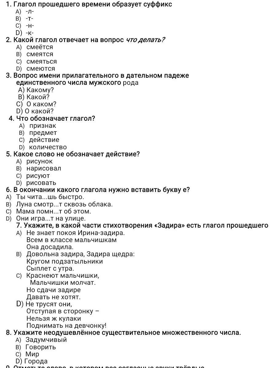 7. Укажите, в какой части стихотворения «Задира» есть глагол прошедшего времени: