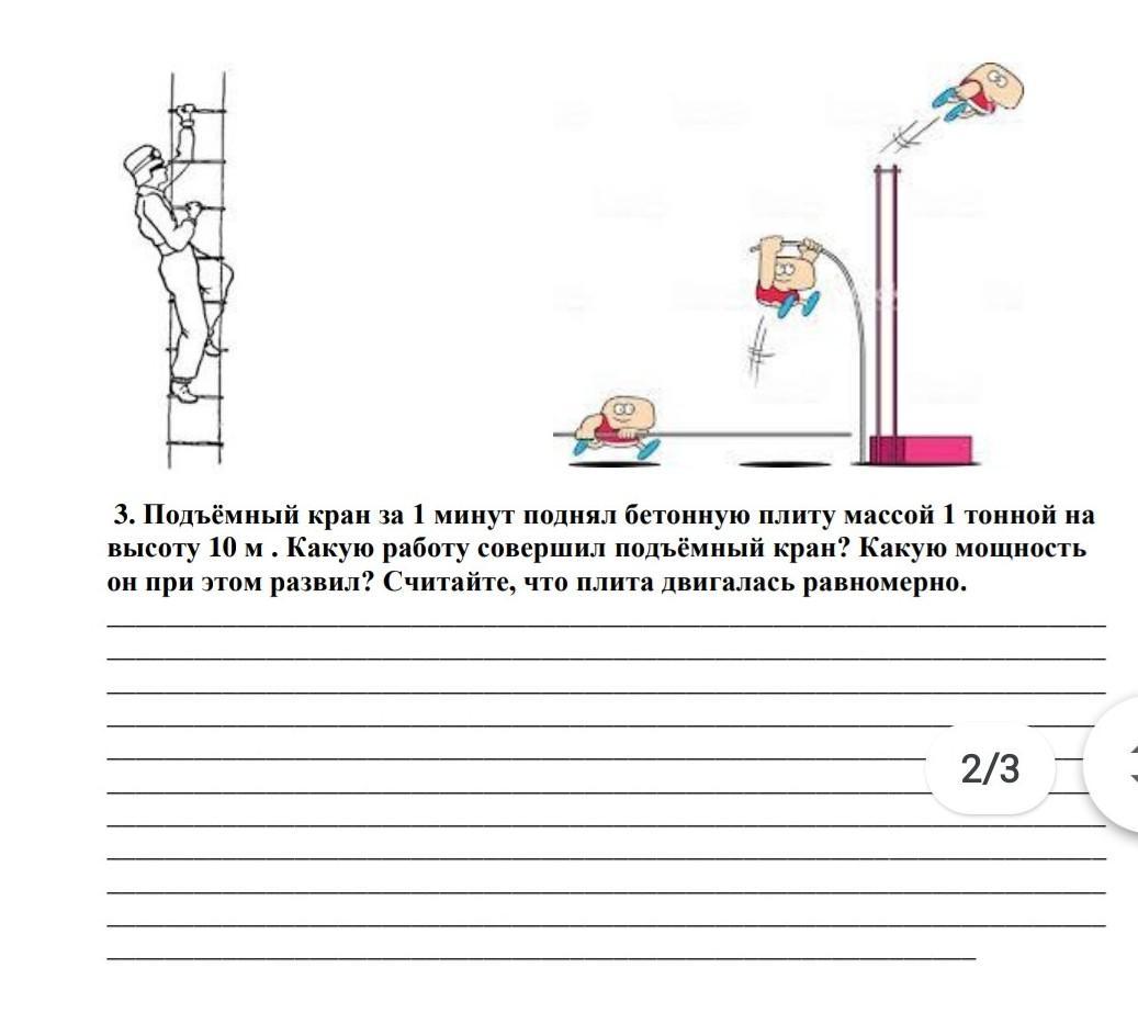подьемный кран за 1 минут поднял бетонную плиту массой 1 тонны на высоту 10 метров. Какую работу совершил подьемный кран? Какую мощность он при этом развил? Считайте что плита двигалась равномерно