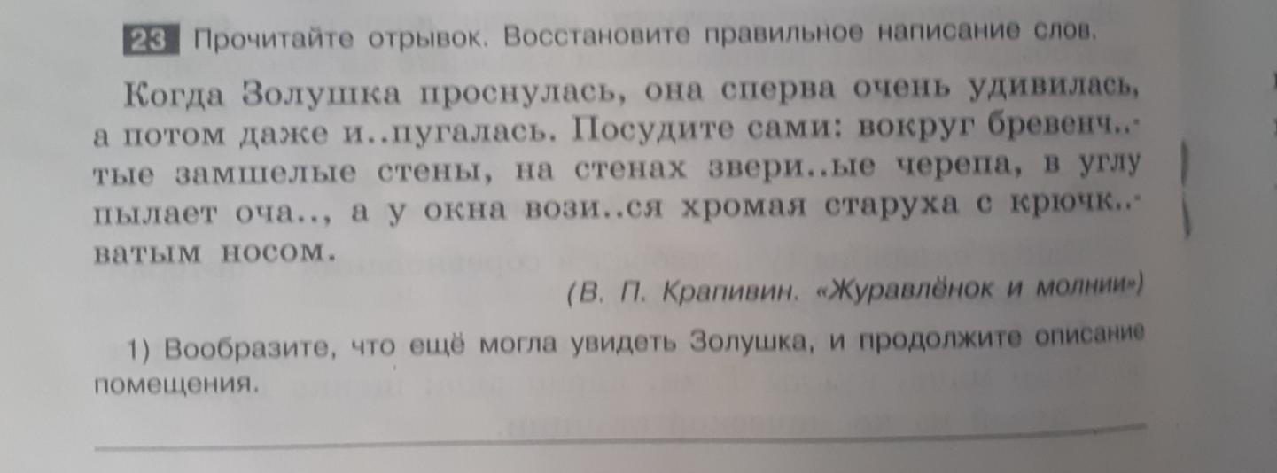 Помогите пж! Выполнить 1) Вообразите, что ещё могла увидеть Золушка, и продолжите описание помещения.