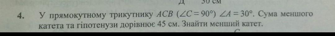 СВ=АВ/2 (по св. катета леж. против угла 30°). Пусть СВ х см тогда АВ 2х см.