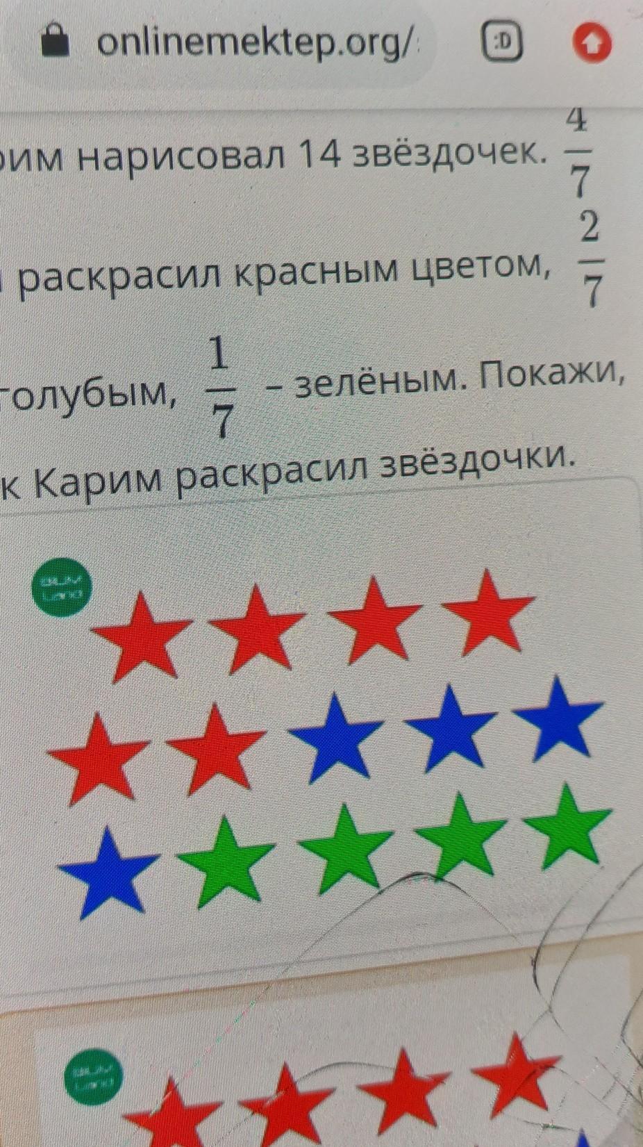 2) Найдем сколько звездочек было раскрашено голубым цветом :