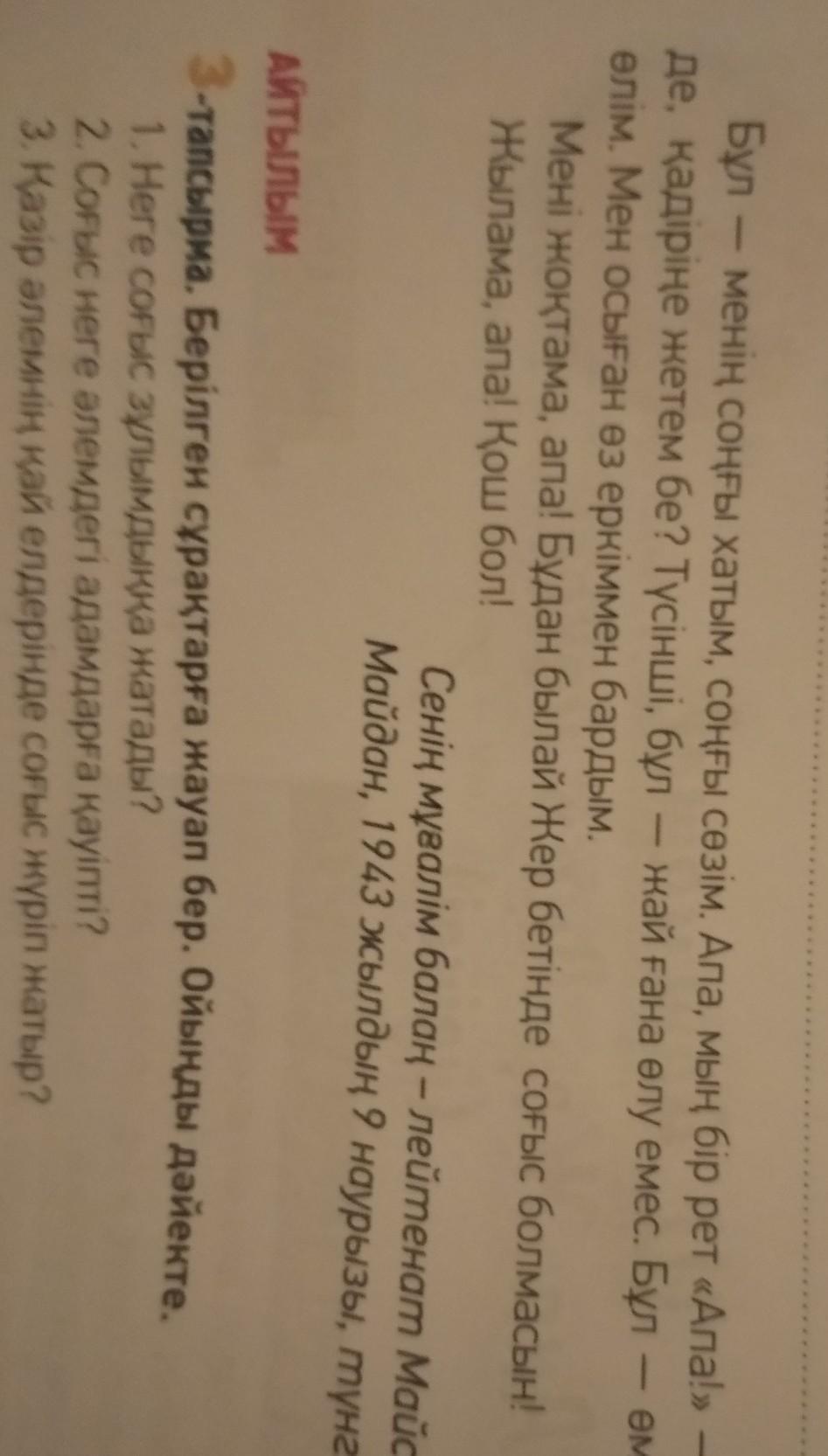 Айтылым. Жазылым. 3-т., 56-б. Берілген сұрақтарға жауап бер. Ойыңды дәйекте.