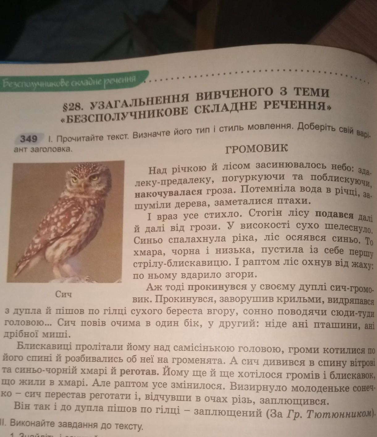 Відповідь: Тип:розповідний, стиль мовлення: науковий, заголовок:дивовижний птах