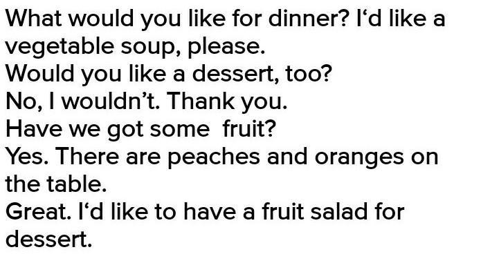 What would you like for dinner? I‘d like a vegetable soup, please.