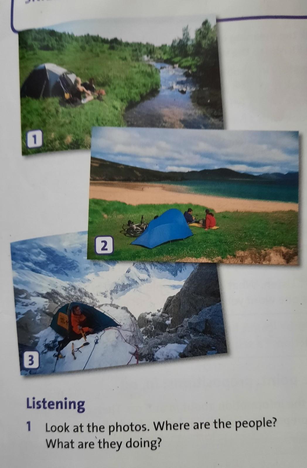 At the 1 picture some people camping in the mountains. At the 2 picture some people camping too. But they camping in a meadow. At the 3 picture group of people camping near the fast and beautiful river. Weather is good. Sun shining. All is good