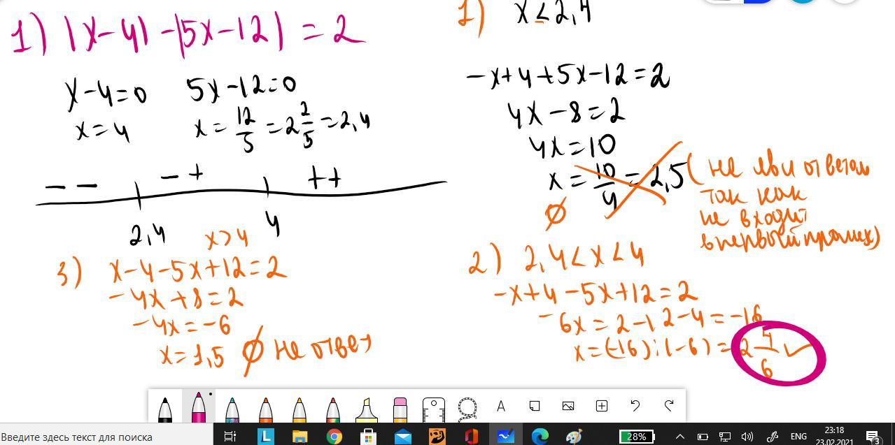 a) рассматриваем каждый модуль, находим x0 : 1) |x-2|=0 x0= 2
