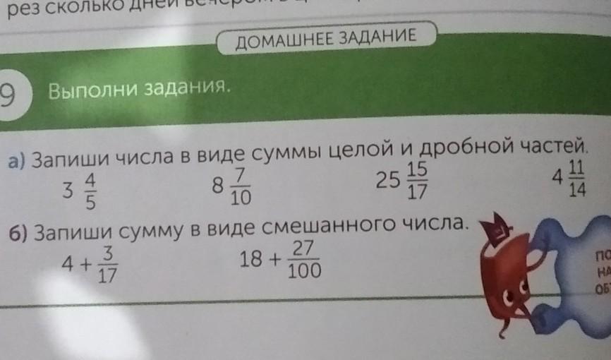 а) Запиши числа в виде суммы целой и дробной частей