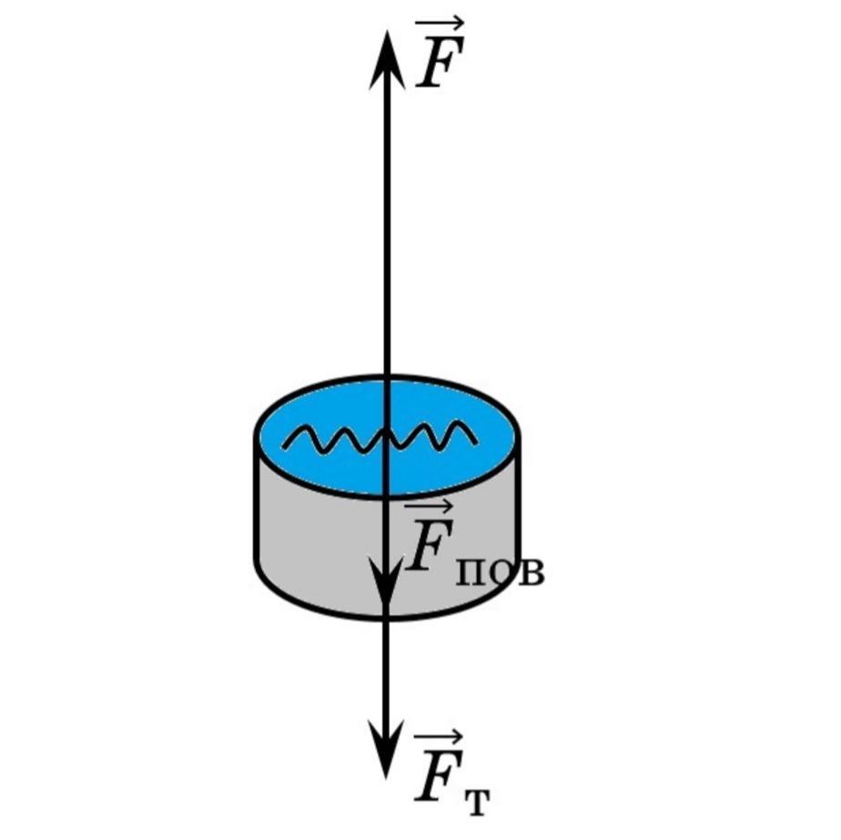 Решение. На проволоку действуют три силы: сила тяжести Fт, сила поверхностного натяжения жидкости Fпов и сила, приложенная к проволоке.