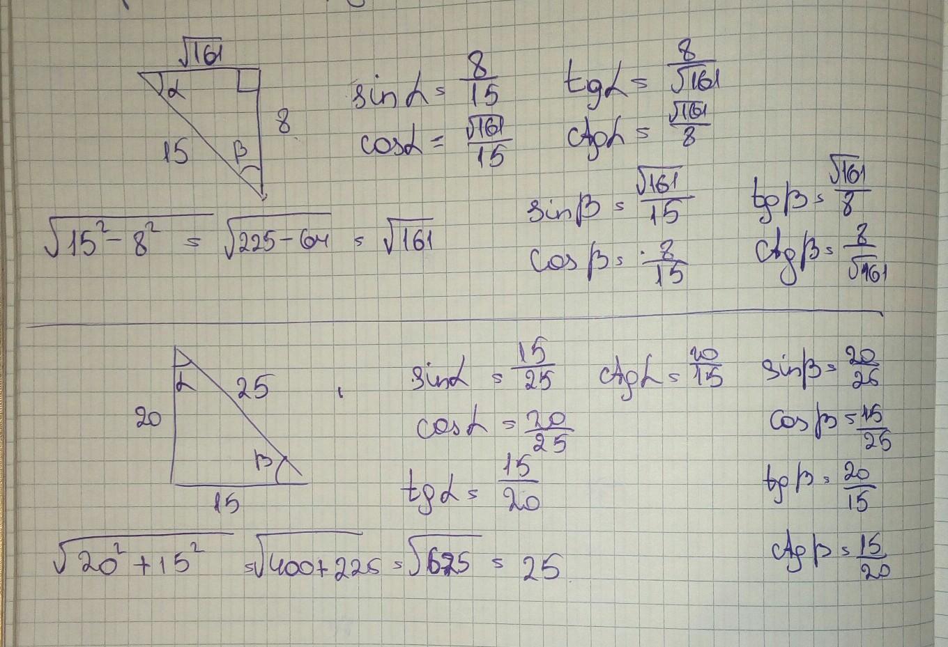 ПОМОГИТЕ ПОЖАЛУЙСТА, Там нужно найти синус, косинус, тангенс и катангенс беты и альфы