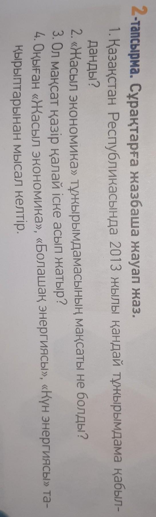 1. Қазақстан 2013 жылы "жасыл экономикаға" көшу жөнінде ьұжырымдама қабылдады.