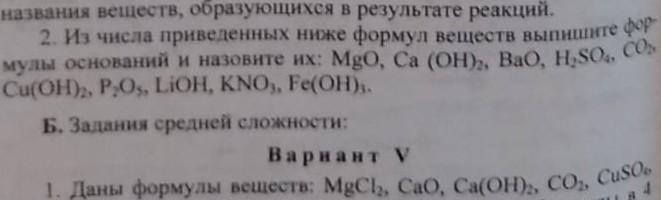 2. Из числа приведенных ниже формул веществ выпишите фор мулы оснований и назовите их: MgO, Ca (OH, BaO, H.so. COь Cu(OH), Р.О., LiOH, KNO, Fe(OH).