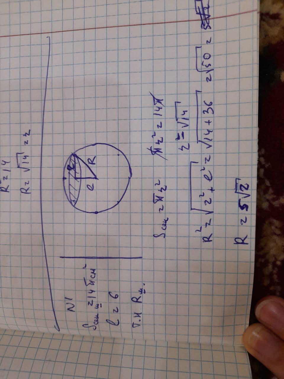 #1: Площадь сечения шара равна 14π см^2. Расстояние сечения от центра равна 6см.