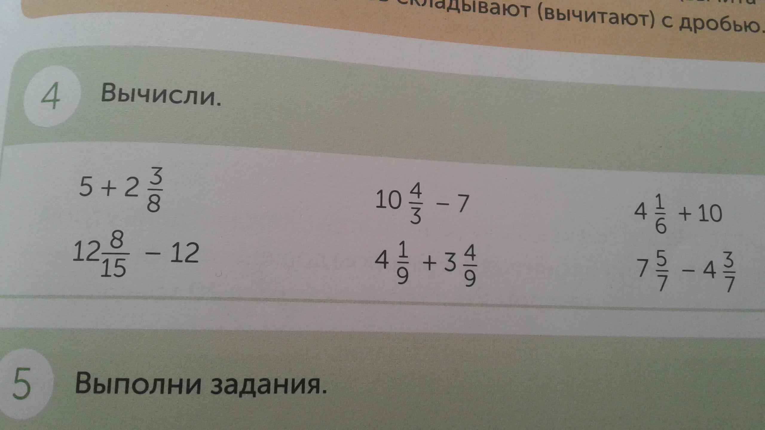7 3/8; 8/15; 3 4/3; 7 5/9; 14 1/6; 3 2/7