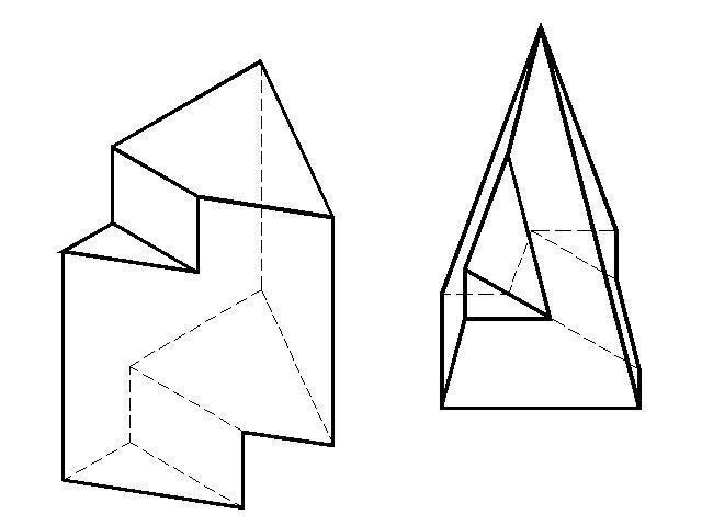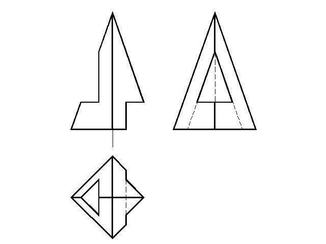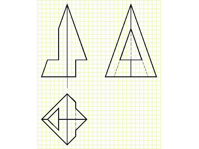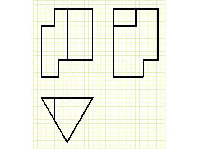 Построить по 3 проекции призмы и пирамиды с вырезами. Размеры увеличить в 2 раза.