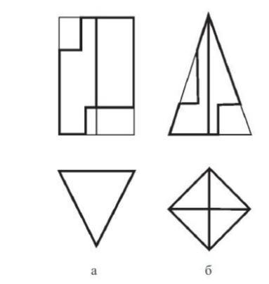 Постройте эскизы призмы и пирамиды, формы которых изменены в результате сечения плоскостями, перпендикулярными фронтальной плоскости проекции. Все построения выполняются на виде сверху. Лишние линии удалите.
