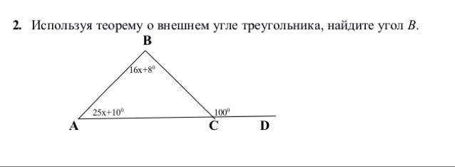 2.Используя теорему о внешнем угле треугольника, найдите угол В.