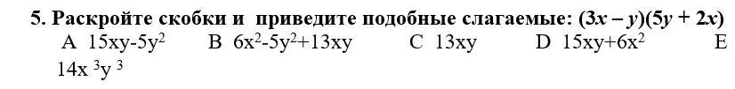 (3x-y)(5y+2x)=15xy+6x^2-5y^2-2xy=6x^2-5y^2+13xy
