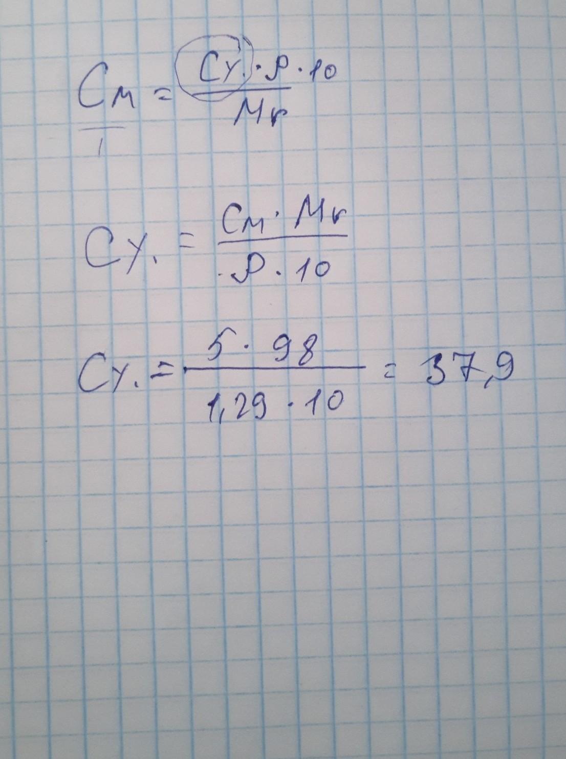 Вычислить массовую долю серной кислоты в ее 5 М растворе (плотностью 1,29 г / мл).