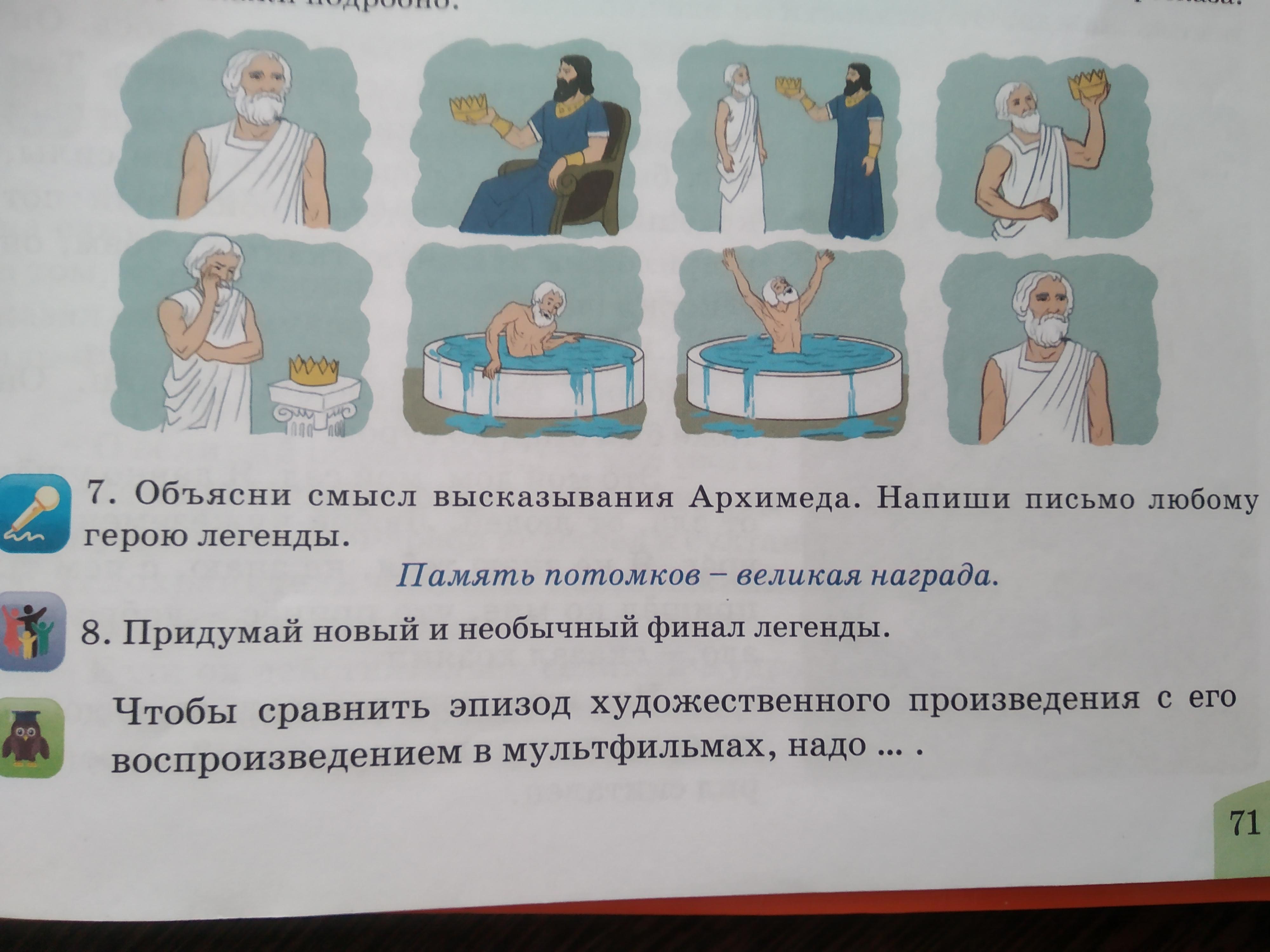 Дорогой Архимед меня зовут (имя) я из (класс) я бы хотела что бы вы вернулись и придумали ещё закон.Про вас писали в разных интересных книгах, и даже мультфильмы. Огромное спасибо за закон.