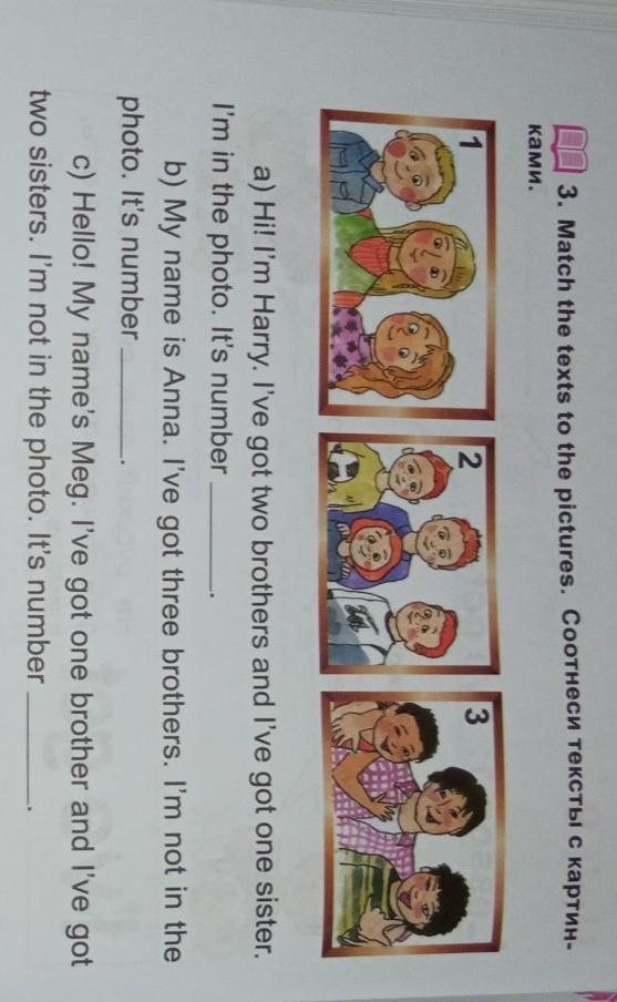 b) My name is Anna. I've got a three brothers. I'm not a photo. It's number three (3).