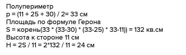 4.Длины сторон треугольника равны 11см, 25см и 30см соответственно. Найдите большую и меньшую высоты треугольника.