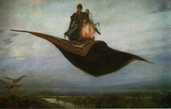 Виктор Михайлович Васнецов придерживался убеждения, что в фольклоре отражается «целый облик народа», его характеристики как внутренние, так и внешние. Одной из первых картин сказочной тематики является картина «Ковер-самолёт», которая была создана в 1880 году.