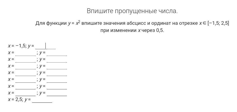 х = 2.5 у=6.25