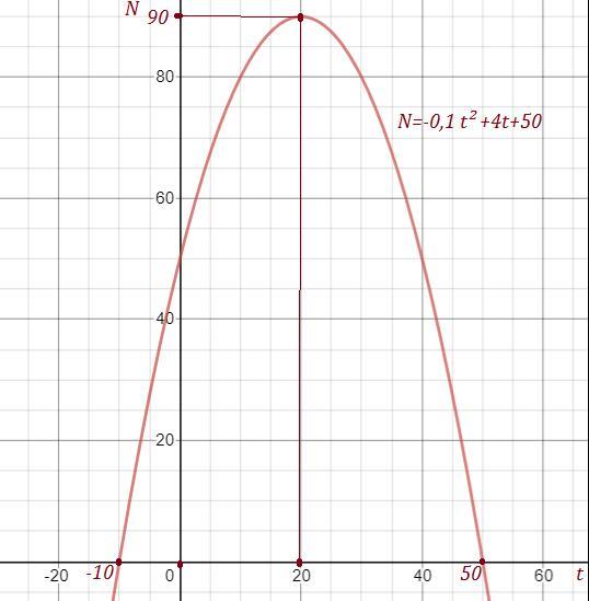 Помогите срочно пожалуйста! В рамках мероприятий по охране природы ведётся учёт числа оленей одной из популяций. С начала учёта числа оленей (N) изменяется по формуле N=-1/10 t^2+4t+50 , где t – время, выраженное в годах.