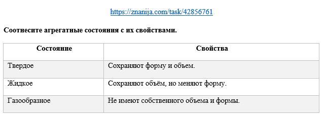 Соотнесите агрегатные состояния с их свойствами.