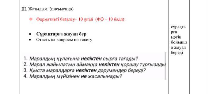 Формативті бағалау– 10 ұпай (ФО – 10 балл):