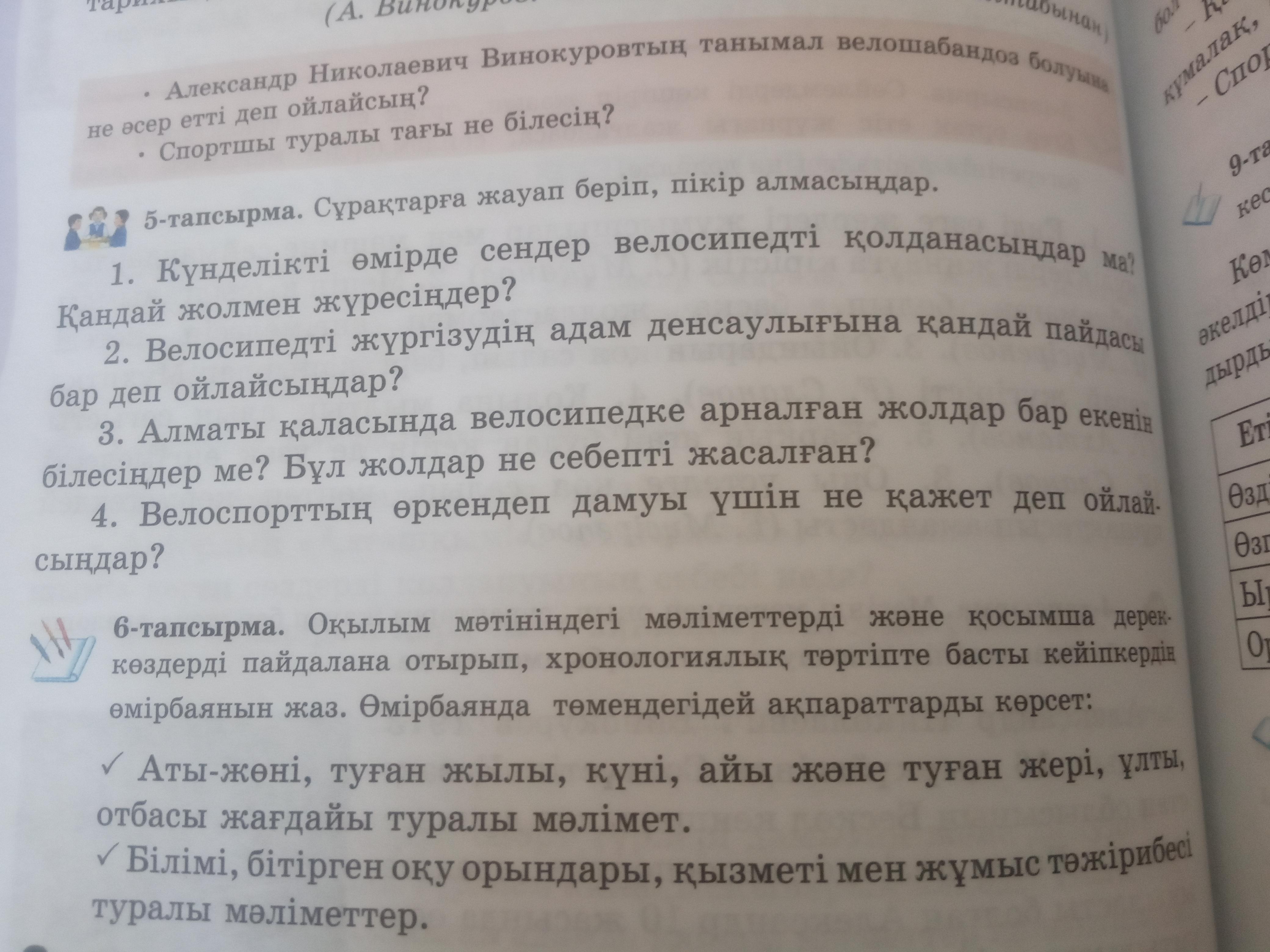 3) Иә , бар екенін білемін . Бұл жолдар , велосипедті жүргізгенде , көлік жолына немесе адамдар жүретін жолға шығып кетпеу үшін жасалған .
