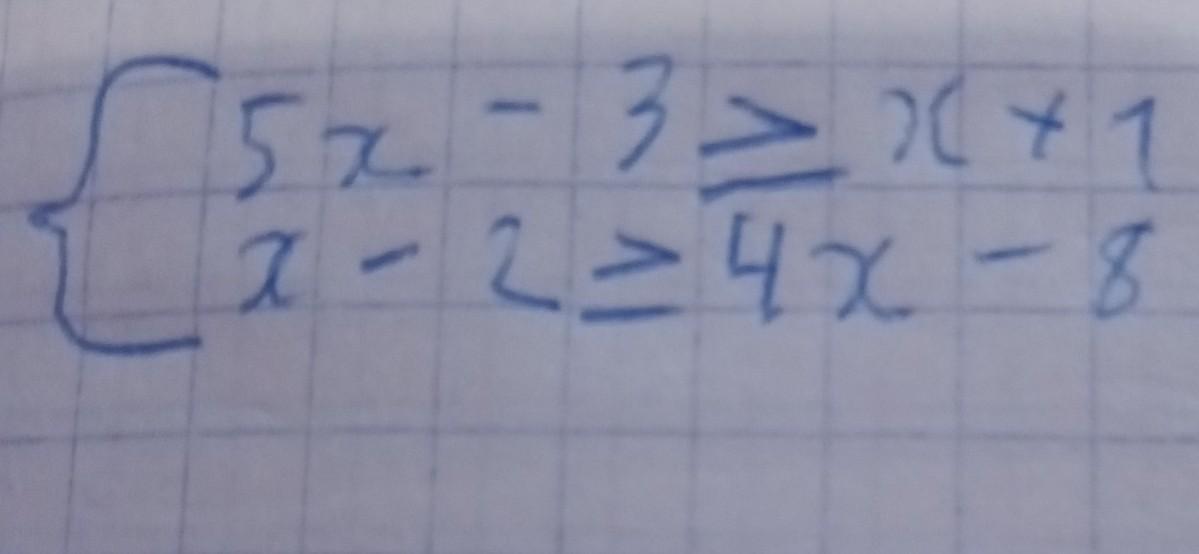 x-2≥4x-8; 6≥3x; x≤6/3; x≤2