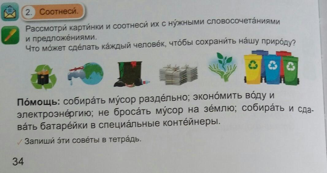 электроэнергию; не бросать мусор на землю; собирать и сда-