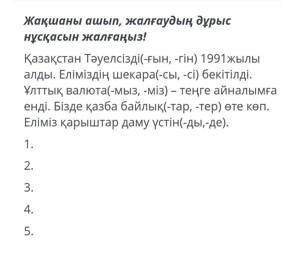1. Қазақстан Тәуелсіздігін 1991 жылы алды.