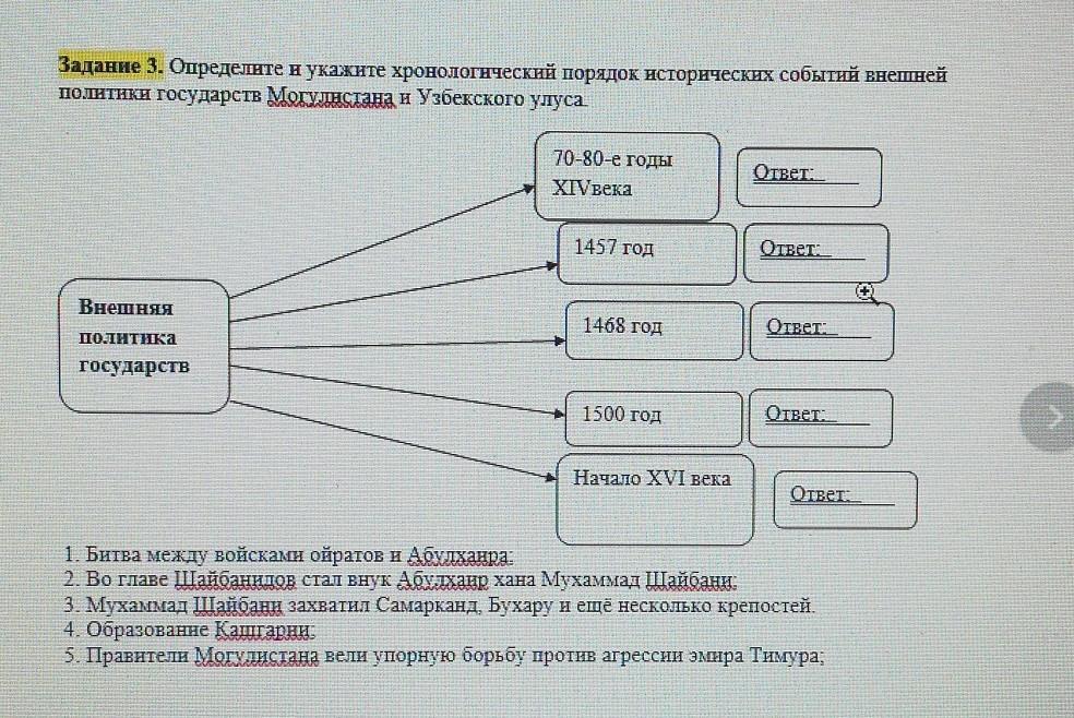 Задание 3. Определите и укажите хронологический порядок исторических событий внешней
