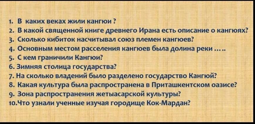 4)Основным местом расселения кангюев была средняя часть долины реки Сырдарья.