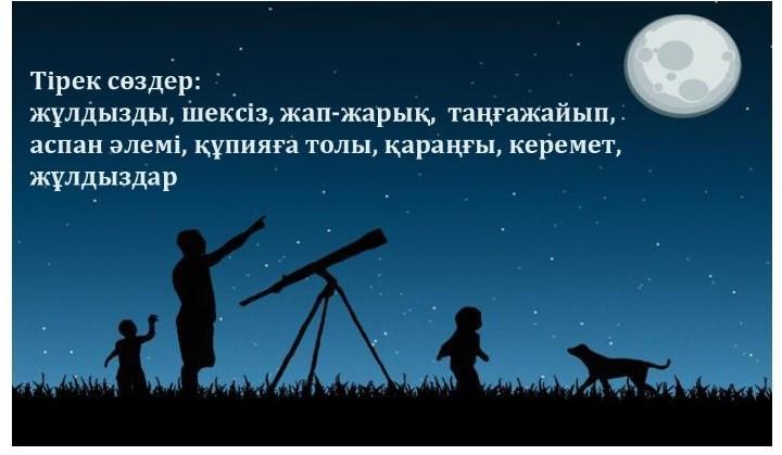 Бір күні досыммен бірге түнде жұлдызды аспанды көруге келдік.жұлдыздар шексіз көп,құпияға толы,қап-қараңғы.Осылайша таңғажайып аспанды әлемін көрдік.