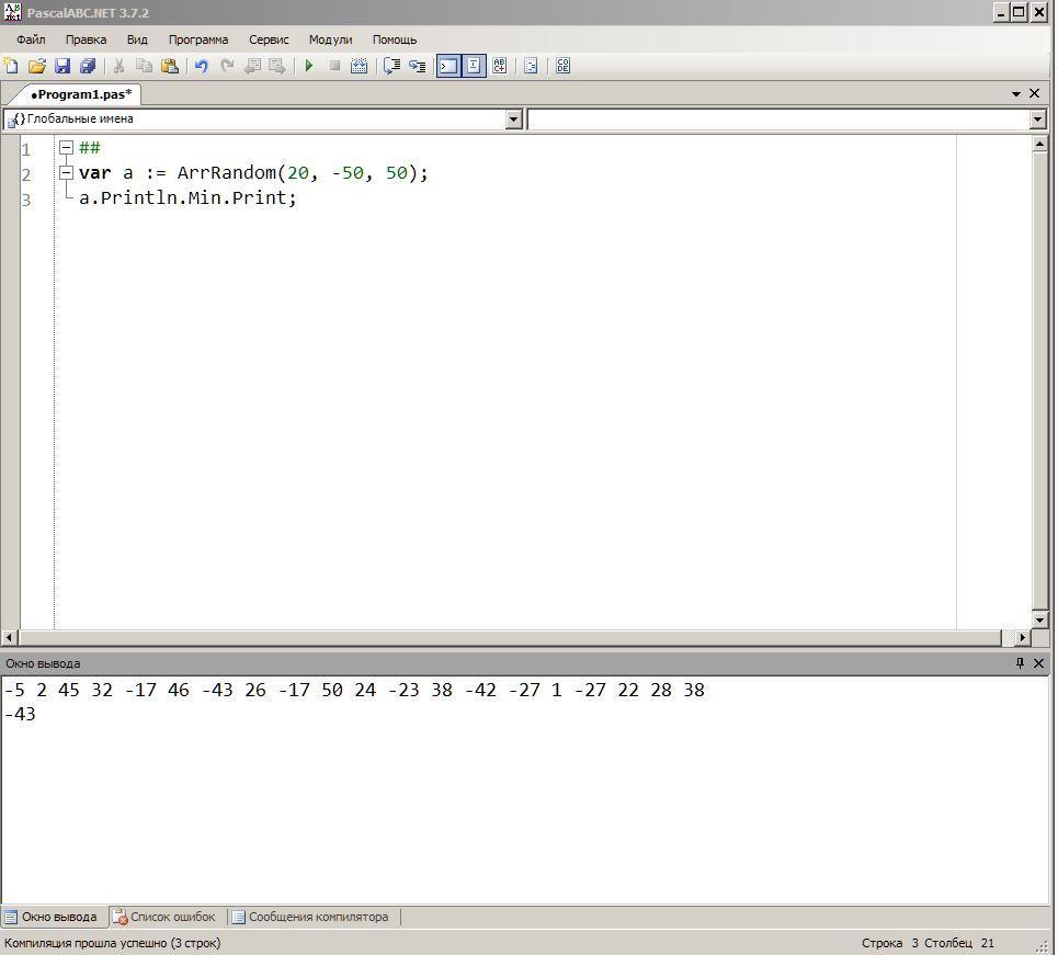 Объявить целочисленный массив из 20 элементов, заполнить массив с