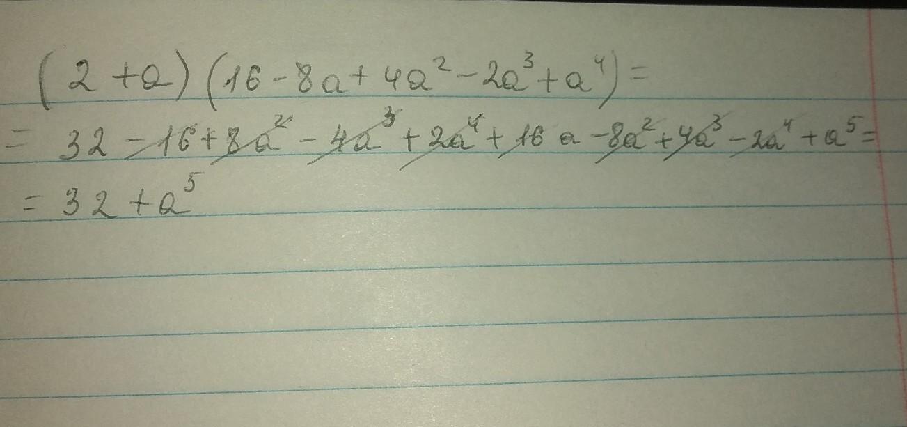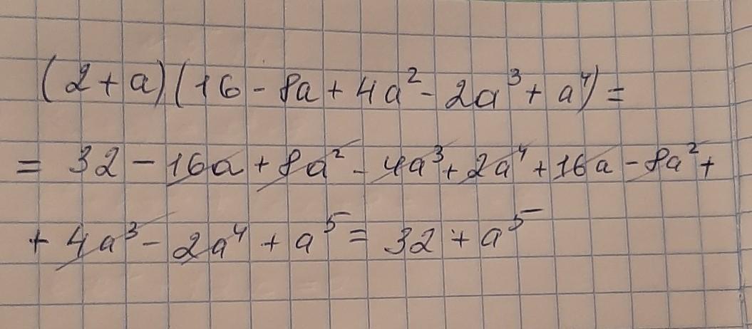 (2+a)(16-8a+4a^2-2a^3+a^4) Преобразуйте выражение в многочлен стандартного вида