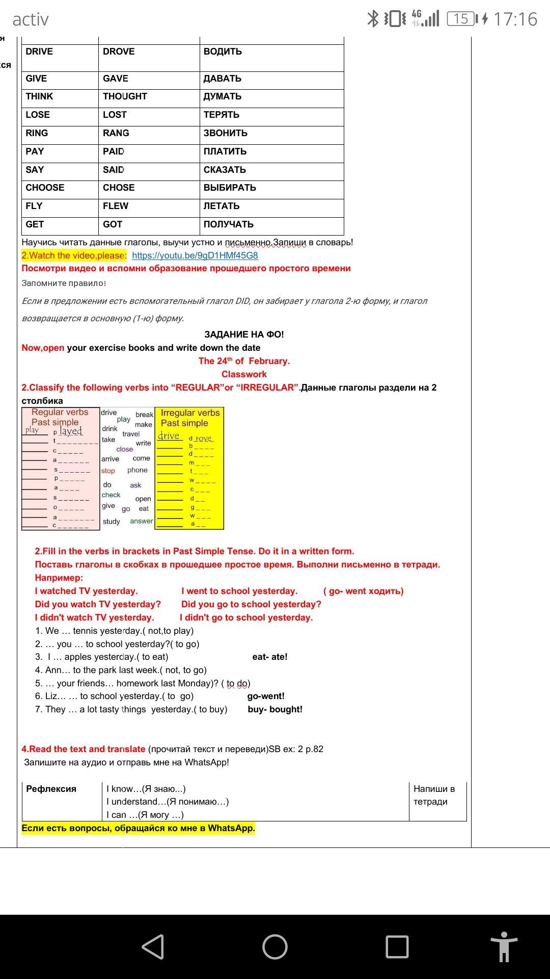 1)Regular verbs: travel-traveled; close-closed; arrived-arrived; stop-stopped; phone-phoned; ask-asked; study-studied; open-opened; answer-answered; check-checked.