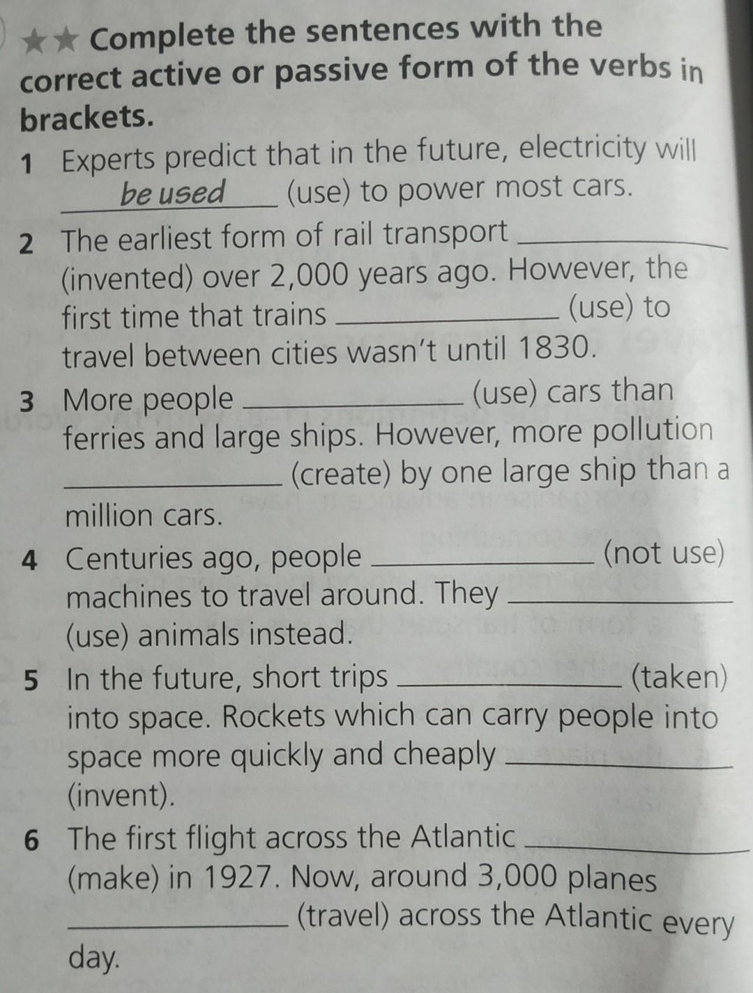 2 was invented ….were used 3 use … is created 4 didn’t use….used 5 will be taken … will be invented 6 was made…travel