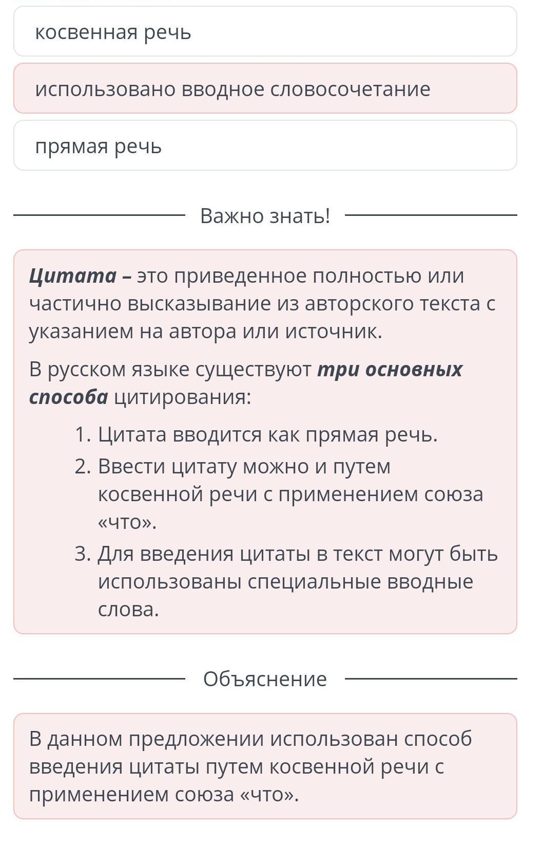 прочитай предложение определи способ цитирования генеральный секретарь оон в своем послании говорил, что "низкое качество водоснабжения и санитарии может пагубно сказаться на каждом жителе планеты"