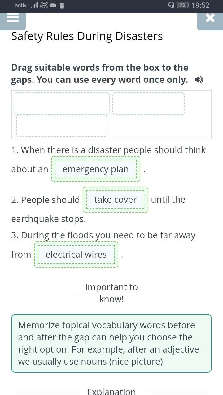 Drag suitable words from the box to the gaps. You can use every word once only.