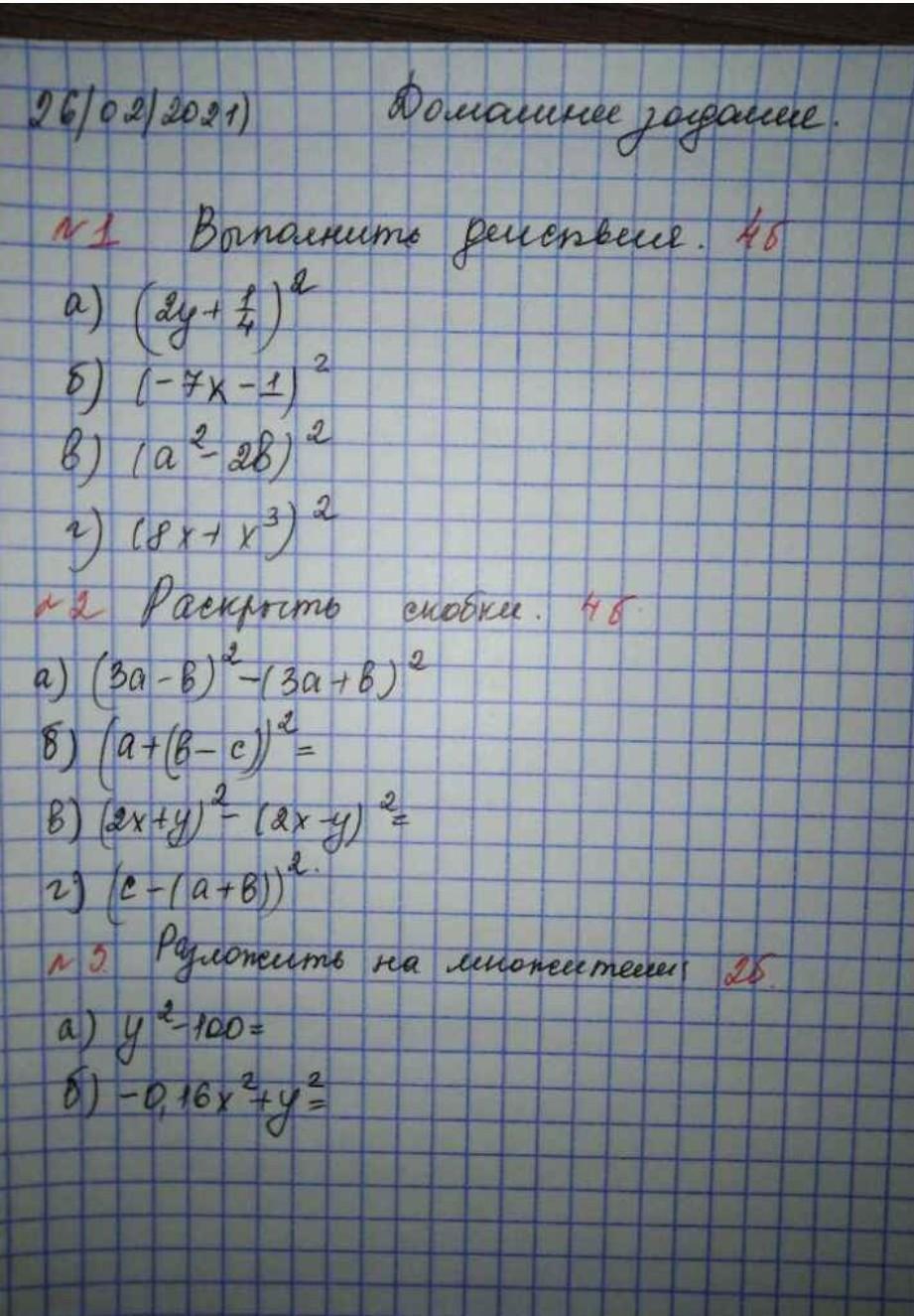 г) (c-(a+b))=c²-2c(a+b)+(a+b)²=c²-2ac-2bc+a²+2ab+b²=c²+a²+b²-2ac-2bc+2ab